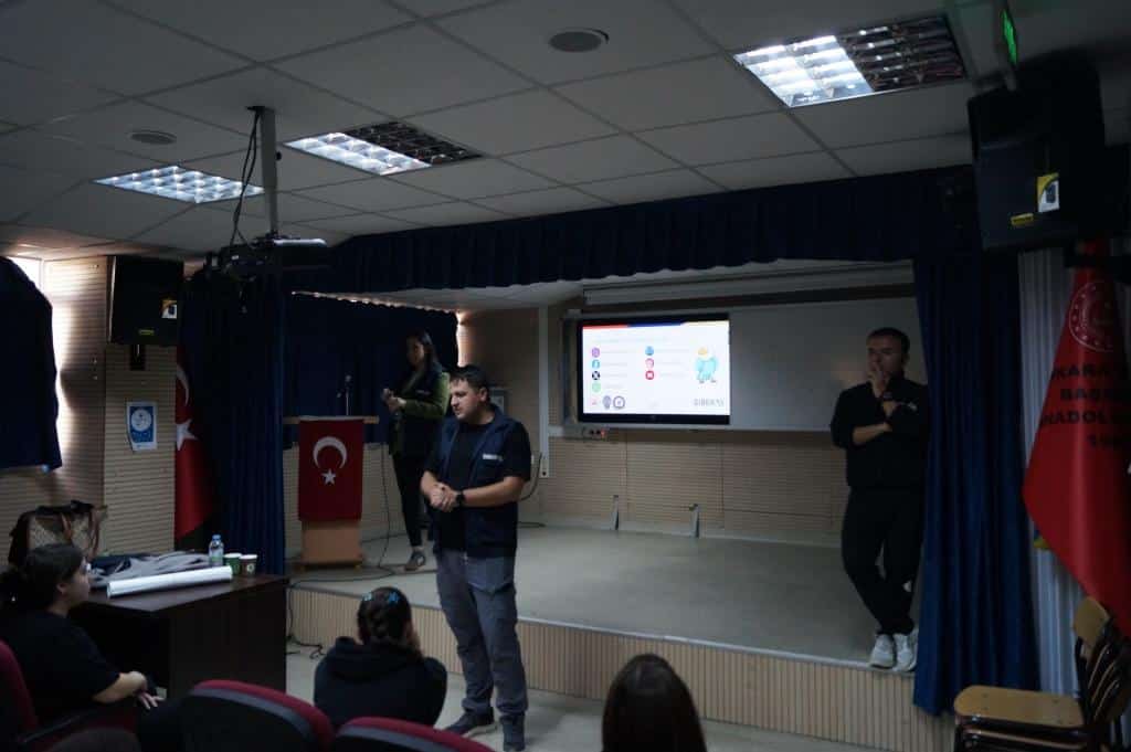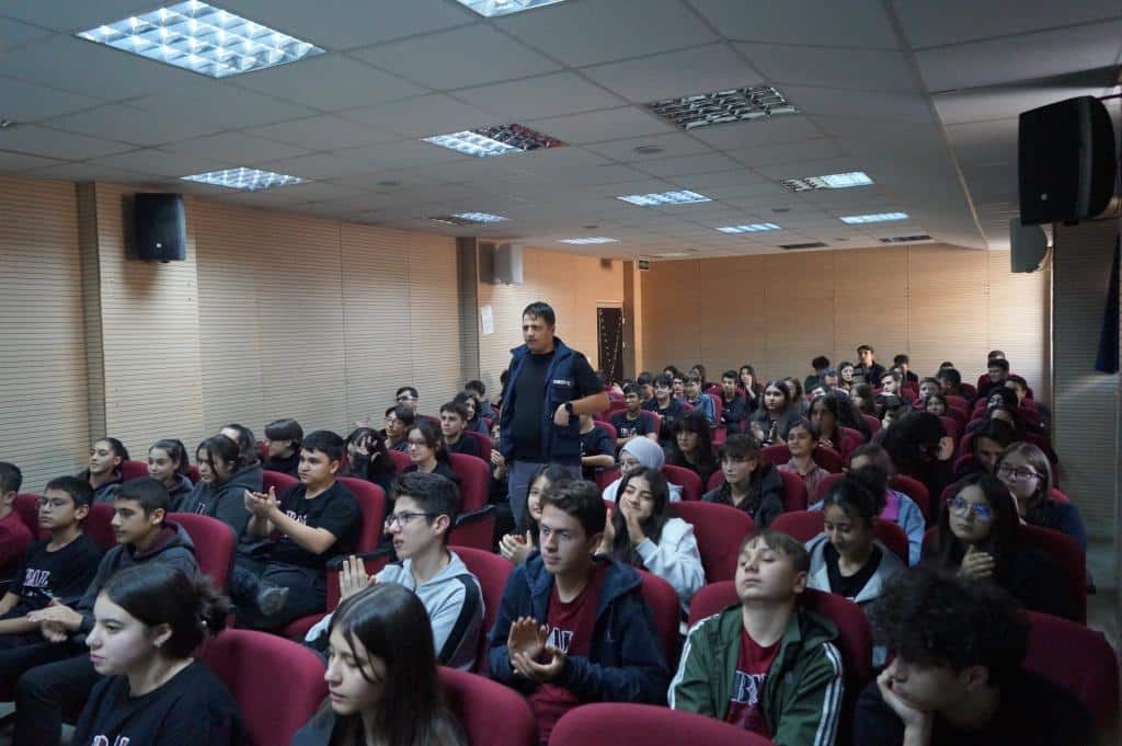 Okulumuzda, Emniyet Genel Müdürlüğü Siber Suçlarla Mücadele Daire Başkanlığı uzmanları tarafından öğrencilerimize yönelik teknoloji, telefon ve sosyal ağ bağımlılığı riskleri ile kişisel siber güvenlik konularında farkındalık eğitimi verildi.