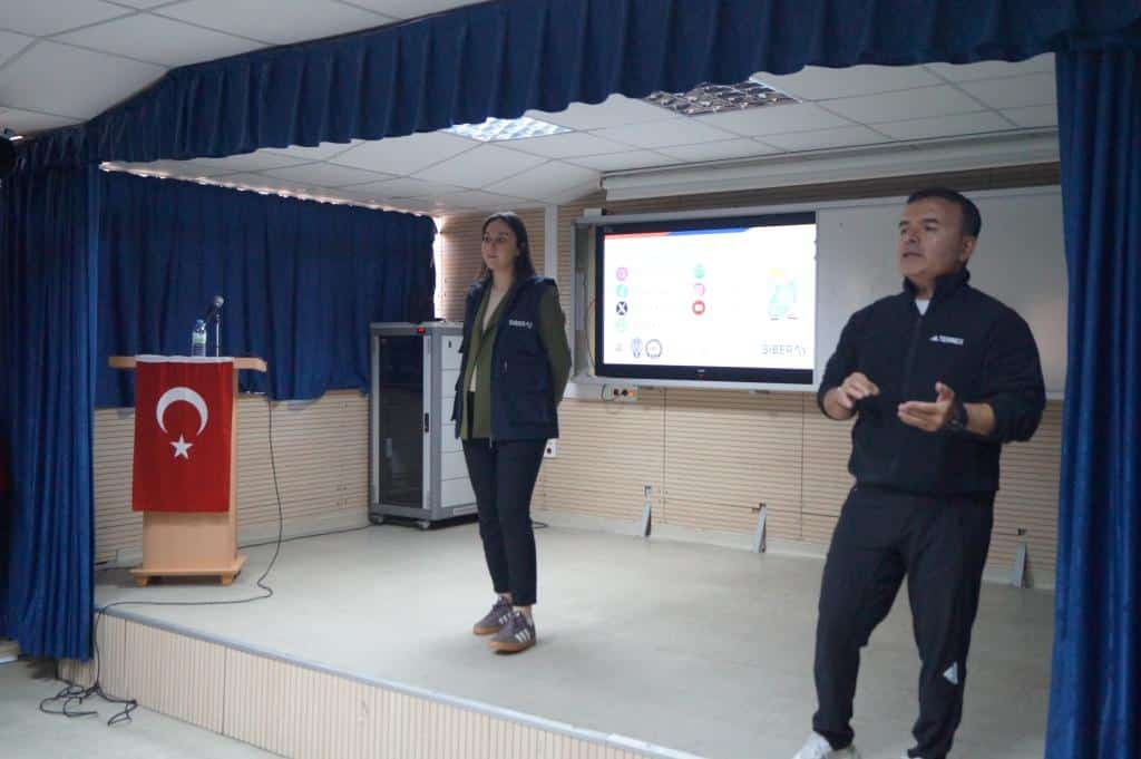 Eğitimde; sosyal medyanın doğru kullanımı, dijital ortamda güvenli iletişim, kişisel verilerin korunması ve bilinçli teknoloji kullanımı gibi konular işlendi. Öğrenciler, sunumu büyük bir dikkatle takip ederek merak ettikleri soruları uzmanlara yöneltme fırsatı buldu.